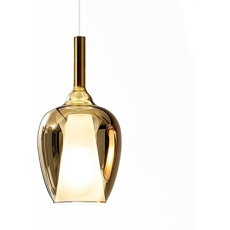 Sospensione una luce dalla forma singolare ma caratterizzata da un doppio vetro a lavorazione liscia ed una colorazione ad effetto scenico. Una lampada da soffitto che illumina e circoscrive la zona o il piano sottostante, ideale per chi non ama la diffusione di luce ma arredare con il corpo illuminante. Una calata da adattare in qualunque stanza, anche in versione multipla, o su piani di appoggio come penisole, tavoli pranzo o scrivanie. Sospensione vetro oro Gea Luce OFELIA S10 Lampada soffitto, vetro oro specchiato, attacco E27 LED Altezza cavo elettrico 300 cm, regolabile. Filo elettrico bianco. Base tonda provvista di staffa per installazione al soffitto misura un diametro di 10 cm per un altezza di 2.5 cm. Finitura base BIANCA OPACA . Il colore del vetro attenua la diffusione della luce in modo omogeneo. Il lampadario Ofelia S10 è provvisto di 1 portalampade attacco E27 per lampadine a led. A richiesta base rettangolare 3 luci (66x9.5x 2.5h), base tonda 3 luci (diametro 30)
