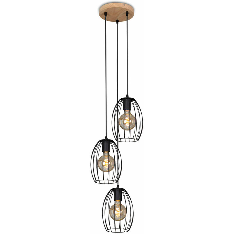 Questa lampada a soffitto con 3 ombrelli di lampade in metallo curvo e dipinto matto-nero è un occhiolante nella tua zona giorno come lampada da soggiorno e lampada da pranzo. La lampada del soggiorno ha 3 versioni E27. La potenza massima per la lampada è di 60 watt. Puoi determinare tu stesso il colore della luce e la luminosità: le lampade non sono incluse. Inoltre, la lampada ha la classe di protezione IP20 ed è destinata all'uso solo all'interno. Dimensioni del prodotto: 315 x 1395 mm (BXH). L'altezza non è regolabile Altezza: 139,5 cm Classe di protezione: IP20 Classe di protezione: II Colore: Nero Diametro: 31,5 cm Dimmerabile: No Illuminante incluso: No Lampadina sostituibile: Si Materiale: In metallo, Legno Numero punti Luce: 3 Sorgente luminosa: E27 Tensione di alimentazione: 230 V Watt per punto di combustione: 180 W Watt totali: 180