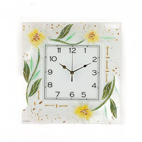 Sospiri Venezia Orologio da Parete Vetro Murano Meccanismo Silenzioso Decorato Floreale Idea Regalo Realizzato a Mano Made Italy (cm 35X35 QUADRATO)