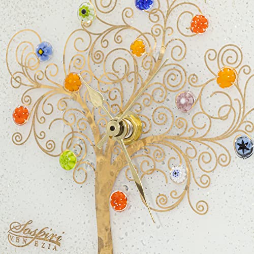 Sospiri Venezia Orologio da Tavolo Vetro Murano Meccanismo Silenzioso Decorato Murrine e Foglia Oro Idea Regalo Realizzato a Mano da Artigiani di Venezia Made Italy