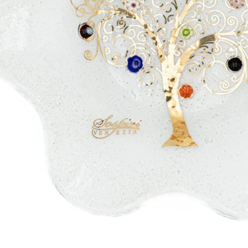 Sospiri Venezia Svuotatasca Piatto Soprammobile Ciotola Albero della Vita Vetro Murano Decorato Murrine e Foglia Oro Idea Regalo Realizzato a Mano Made Italy (19X19)