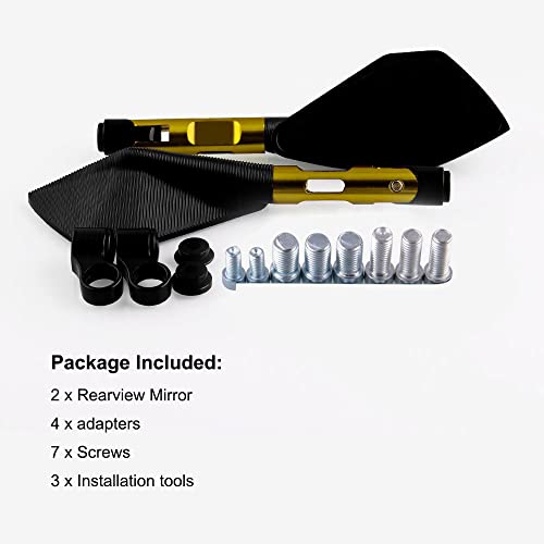 Sostituibile Specchietti Retrovisori Laterali Moto,MoreChioce Universal Forma di Diamante Specchietti Moto Retrovisori in Lega di Alluminio Rotazione di 360°Staffa,D'oro