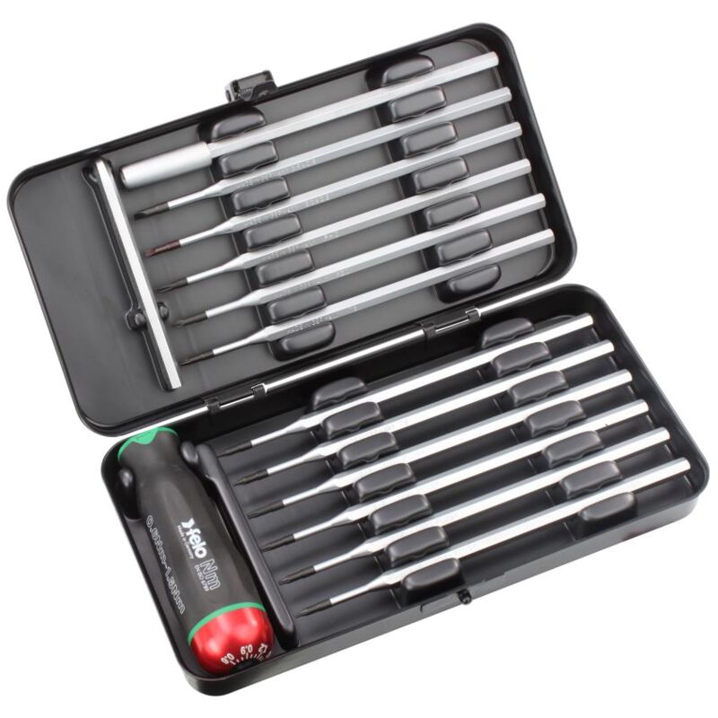 Serie NM Cavivitore Box 14 pezzi. (0,6 nm-1,5 nm) Colore per l'identificazione dell'area di coppia, progettazione ergonomicamente matura nella tecnologia a 2 componenti avanzata, lame intercambiabili per la massima flessibilità in tutte le aree di applicazione. Solemony 100%, semplice regolazione della coppia, innesco preciso quando la coppia impostata viene raggiunta-chiaramente sensibile e udibile, sano da speciale Chrome-Mobdän-vanadium in lega, miglior dati sulle prestazioni al 100% tramite valori di DIN, punta nera per precisa Contenuto di adattamento: 1 pezzo di klinge torx t 6 / t 7 / t 8, torx-plus ip 6 / ip 7 / ip 8, slot 3.0 x 0,5 / 3,5 x 0,6, Philips pH 0, pozriv pz 0, 1 supporto magnetico, 1 manico di coppia 0,6 - 1,5 nm (anello verde), 1 tasto di regolazione, in scatola metallica