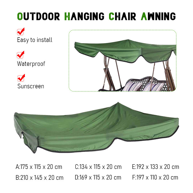 Specifica:Materiale: OxfordColore: VerdeFormato 1: (L) x (W) x (H) 175x115x20 cmFormato 2: (L) x (W) x (H) 210x145x20 cmFormato 3: (L) x (W) x (H) 134x115x20 cm Formato 4: (L) x (W) x (H) 169x115x20 cm Formato 5: (L) x (W) x (H) 192x133x20 cm Formato 6: (L) x (W) x (H) 197x110x20 cm Caratteristiche: 1. Tessuto resistente e non dissolvenza. 2.Anti-uv, impermeabile e antivento. 3.Easy da allegare con pasta di magia strip. 4. Di ricambio baldacchino coperchio superiore per altalena sedia. 5. Ideale per la maggior parte dei due o tre posti altalena da giardino sedie, si prega di scegliere il Formato richiesto dal menu. 6. Dimensioni compatte, leggero e facile da trasportare. Quando non c' è bisogno di usarlo, si può facilmente piegare esso. Cornici E Articoli Da Esposizione incluso: 1 x Altalena Sedia Copertura Superiore (Solo coperchio superiore!)