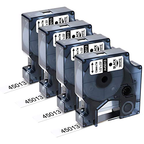 Sostituzione nastro per etichette compatibile Upwinning per Dymo D1 45013 S0720530 Cartuccia 12 mm x 7 m Nastri nero su bianco per Dymo 160 210D 260P 280 360D 420P PnP 450 500TS PC, confezione da 4