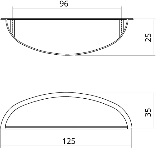DIMENSIONI: Lunghezza totale: 125 mm / Interasse fori BA: 96 mm / Altezza: 35 mm / Profondità: 25 mm