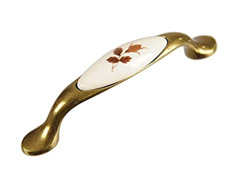 Sotech VENUS porcellana maniglia maniglie per mobili Bianco con foglia parete/ottone effetto anticato BA 96 mm