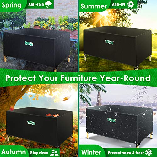 ✔【Versione di aggiornamento impermeabile al 100%】 Sotor copertura per mobili da giardino, realizzata in tessuto oxford 420D ad alte prestazioni con pvc nero, quindi protezione UV. La maggior parte delle coperture per mobili da esterno sul mercato non sono impermeabili, quindi abbiamo sviluppato una versione impermeabile migliorata, ogni cucitura è dotata di adesivo PU impermeabile. Anche se lo risciacqui con acqua o lo immergi a lungo, non penetra affatto.