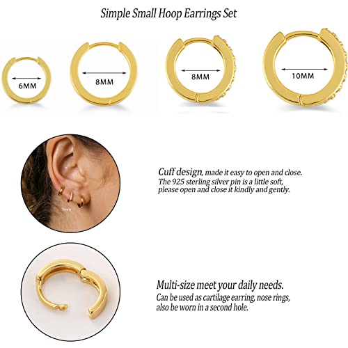 ✨【SET DI ORECCHINI A CERCHIO PICCOLO】Diametro interno di piccoli orecchini a cerchio huggie: 6 mm/8 mm/10 mm/14 mm. Puoi scegliere la taglia che ti serve in base alle tue preferenze. La taglia piccola è adatta per piccoli lobi delle orecchie, 2° foro, 3° foro superiore e può essere utilizzata come orecchini per cartilagine.