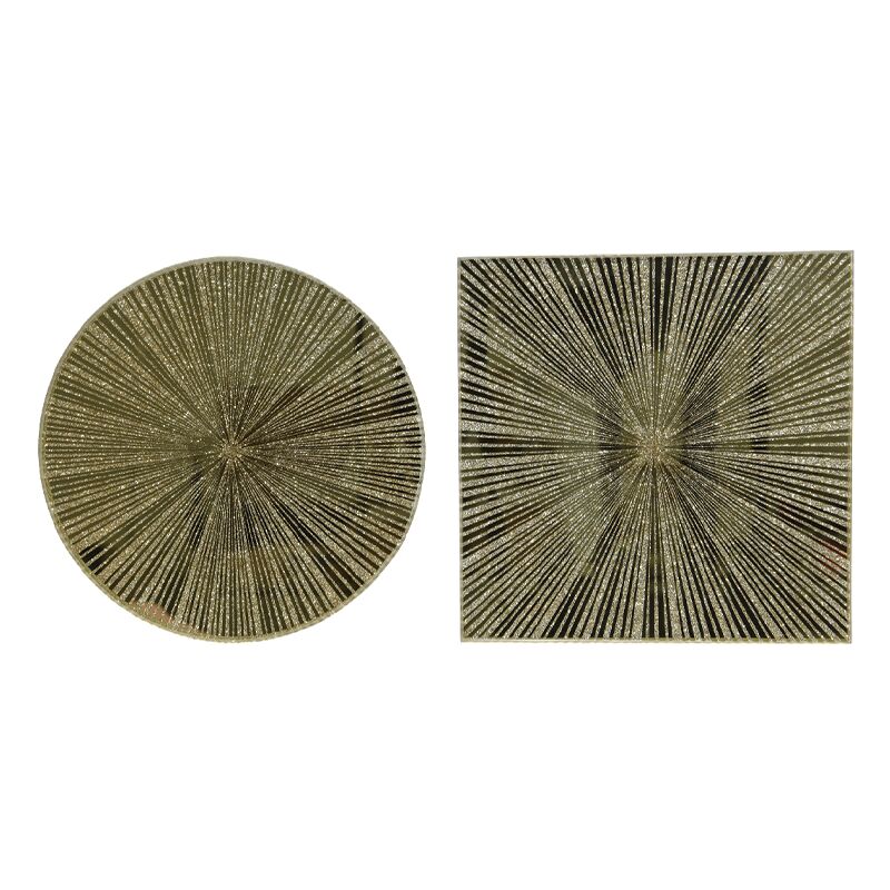 Sottobicchiere oro assortiti Disponibili in 2 formati, circolare o quadrato Dimensioni circolare: Ø 10 cm Dimensioni quadrato: L 10 x P 10 cm Verrà inviata la tipologia disponibile a magazzino