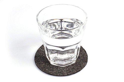 Set di 10 sottobicchieri in feltro dai colori moderni, raffinati, 10 cm, rotondi grigio scuro