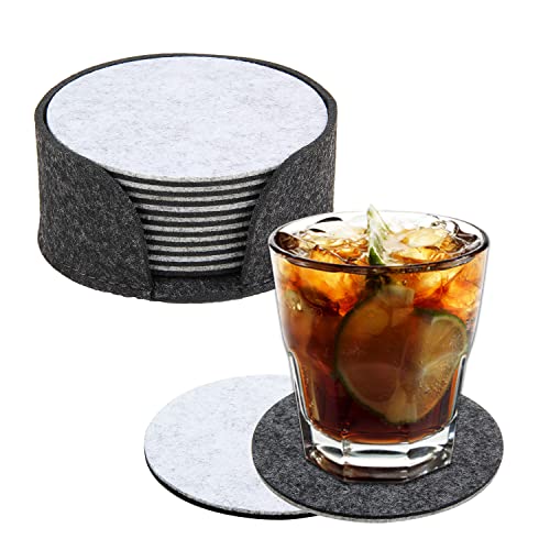 Sottobicchieri in Feltro Tondo Per Bicchieri - Set di 10 Incl. Box - Sottobicchieri di design - Bevande Sottobicchieri In grigio scuro/grigio chiar Per Bevande, Tazze, Bar, Bottiglie,Teiere,caffè