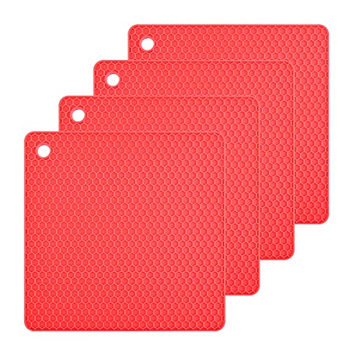 Sottopentola in silicone rosso, supporto in silicone, tovagliette in silicone, tovagliette in silicone, tappetino caldo in silicone (set di 4)