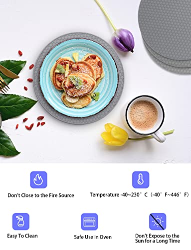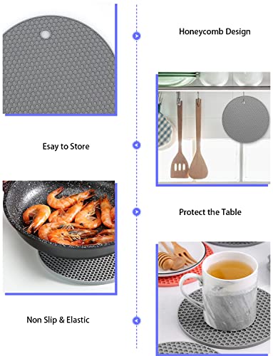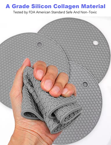 4 Pcs Sottopentola in Silicone Rotondi, Pitasha Multiuso Tappetino Portavasi in Silicone Resistente al Calore, Tappetini da Tavola Rotondi Multiuso Flessibili Antiscivolo (Grigio)