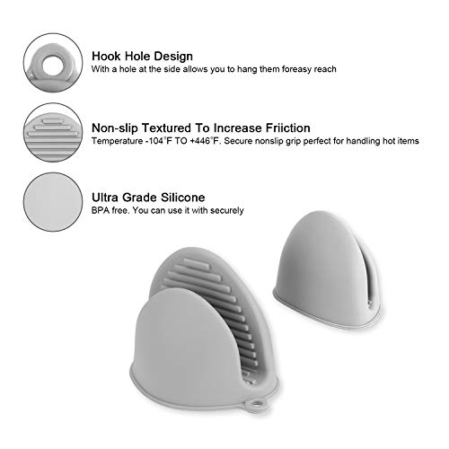 Mini Guanto da Forno - non sono così grandi come i guanti tradizionali e coprono solo le dita. Per questo motivo fare attenzione a non toccare il polso con oggetti caldi. I guanti morbidi si adattano a quasi tutte le mani, indipendentemente dalla misura grande o piccola. Flessibile e comodo da usare durante il trasporto di pentole calde, piatti o pasta. Quando non in uso, entrambi i guanti possono essere incastrati tra loro e appesi ad un gancio.