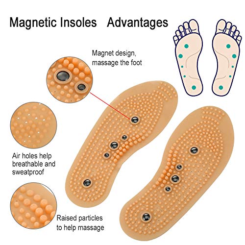 SOLETTA MASSAGGIO UNICA MAGNETICA: 5 magneti bionici magnetici disegnati scientificamente e per ogni sottopiede secondo il punto di pressione del piede umano. Stare o camminare su una superficie dura per promuovere efficacemente la circolazione sanguigna e proteggere le caviglie, le ginocchia, i fianchi e la vita. Può aumentare la resistenza del corpo e trasformare tutte le calzature in scarpe da massaggio.