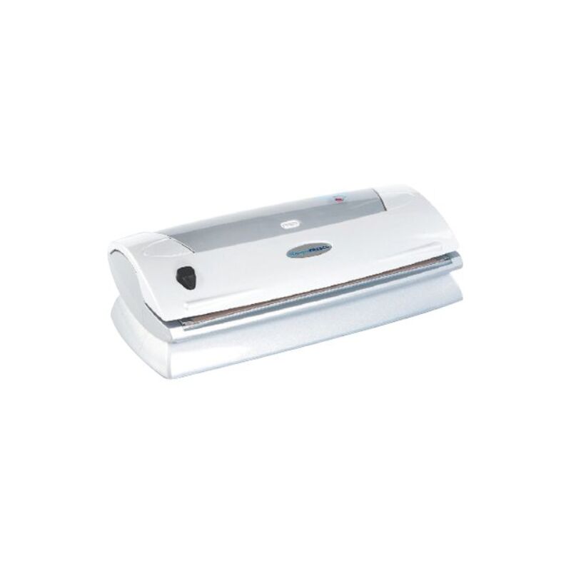 Corpo in ABS e piedini antiscivolo. Avviamento manuale, ciclo di aspirazione e saldatura automatici. Tasto per lo sfiato. Livello di vuoto -800mbar. Con compressore rotativo a pistone, esenti da lubrificazione, con con protezione termica. Peso Kg. 3,6. Dimensioni: Cm. 40x8, altezza Cm. 13. Con 20 sacchetti in dotazione.