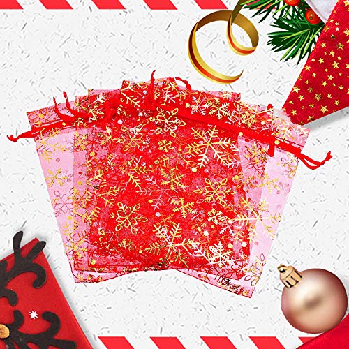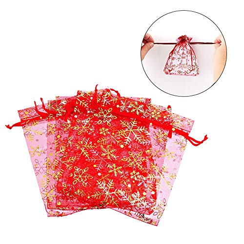 Souarts rosso Christmas Snowflake organza Jewelry Gift Pouch Bags, confezione da pz.