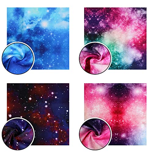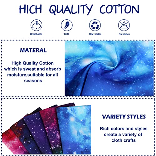 Souarts Tessuto di cotone al metro per cucito, patchwork, confezione di residui di tessuto, fai da te, 5 pezzi da 50 cm x 50 cm, galassia, viola, nebbia stelle, cielo e spazio