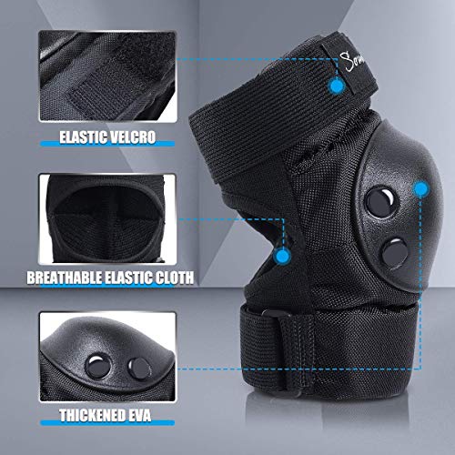 Soudittur Set di Protezioni per Bambini Ginocchiere Gomitiere Polsiera 6 in 1 Protettive con Cinghia Regolabile per Bicicletta, Pattinaggio, Scooter, Skateboard, Roller Blading (S (3-4 Anni), Nero)