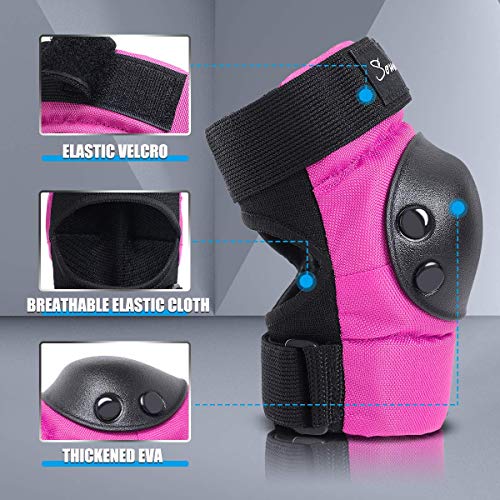 Soudittur Set di Protezioni per Bambini Ginocchiere Gomitiere Polsiera 6 in 1 Protettive con Cinghia Regolabile per Bicicletta, Pattinaggio, Scooter, Skateboard, Roller Blading (S (3-4 Anni), Rosa)