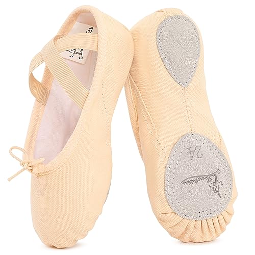 Soudittur Scarpe Danza Classica Tela Scarpette Ballo Mezze Punte Scarpe da Ballerina Ginnastica Ballo Pantofole per Bambina Ragazze Donna Beige, EU 36