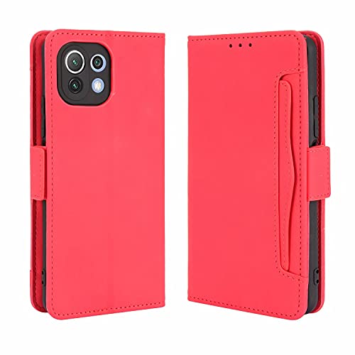 SOUFU Coque pour Xiaomi Mi 11 Lite 5G/4G Coque,Premium Étui Housse en Cuir de Protection Bande[Stand Support] [Porte-Cartes de Crédit] pour Xiaomi Mi 11 Lite 5G/4G Coque-Rouge