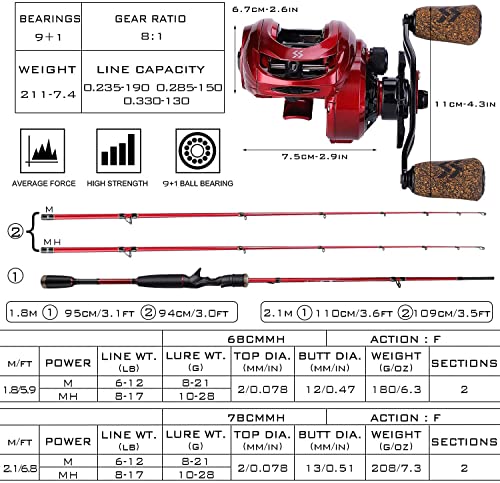 Sougayilang Baitcasting Combo, 2 pezzi M/MH Canna Baitcasting Leggero e Mulinello Baitcaster 8.0:1, Canna da pesca e mulinello Combo da viaggio, 1,8 L