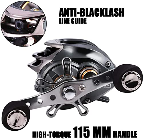 Liscio e potente: mulinelli da pesca Baitcaster hanno 11 + 1 Shielded Corrosion Resistant maxidur cuscinetti a sfera, CNC lavorato bobina in alluminio, eccellente rapporto di trasmissione ad alta velocità: 7.0:1 ,State-Of-The-Art 3 fibra di carbonio disco Star Drag System con 18 Lbs di forza elaborata grande.