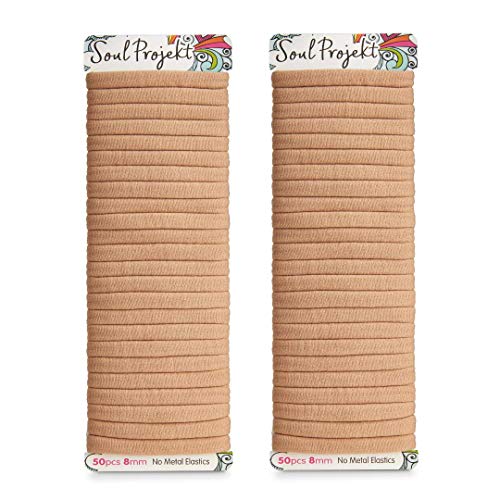 Soul Projekt Elastici per Capelli Grossi, 50 x Biondo Scuro 8mm, Elastici per Capelli Bambina, Codini per Capelli Donna Senza Metallo, Elastico per Capelli Colorati, Elastici Capelli Biondi e Ragazze