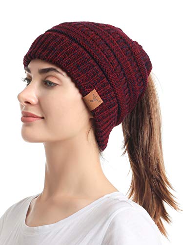Soul Young Coda di Cavallo Messy Bun Beanie Tail Knit Hole Berretto Lavorato a Maglia, Morbido panino Invernale con Foro a Zapper