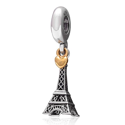 Soulbead la Torre Eiffel di Parigi in argento Sterling 925 con pendente a forma di cuore, colore: oro europeo