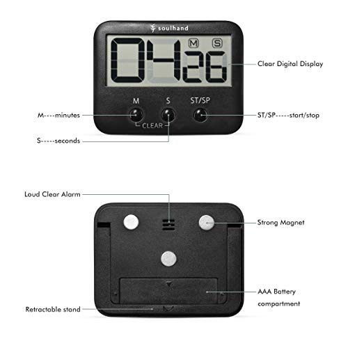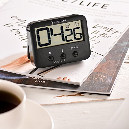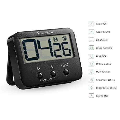 Soulhand Timer da Cucina Digitale, Timer da Cucina, Grande Allarme Sonoro Forte Supporto Magnetico con Grande Schermo LCD per Cucina, Cottura, Sport, Gioco, Ufficio (Nero)