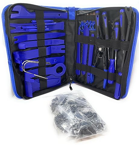 La confezione include: 102 strumenti per la rimozione dei tagli, set di clip di fissaggio per paraurti con clip di fissaggio per terminali e clip adesive per cavi Kit di leva per la rimozione dei pannelli per auto pinze automatiche