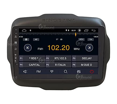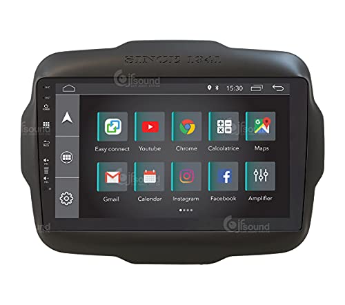 Jf Sound car audio system Autoradio Custom Fit per Jeep Renegade Android GPS Bluetooth WiFi Dab USB Full HD Touchscreen Display 9", Nero