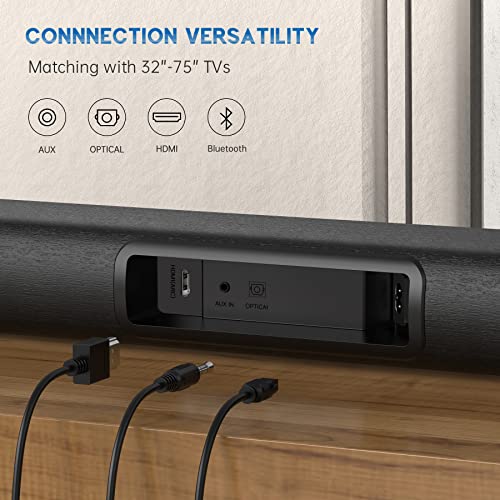Soundbar con HDMI eARC, che supporta i formati audio Dolby e DTS, soundbar per TV con subwoofer integrato, 3 modalità EQ, soundbar Bluetooth con ottico/SPDIF/AUX, montaggio a parete possibile