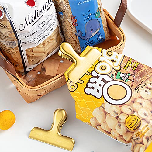SourceTon - Set di 8 clip resistenti in acciaio inox, 7,6 x 6,1 cm, resistenti, per sacchetti di caffè, cibo, pane, cucina, uso domestico, colore: oro