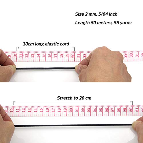SourceTon Corda elastica, ideale per artigianato, elastici per capelli, bordatura e uso domestico, 2 mm x 50 m, colore nero e bianco, confezione da 2 pezzi