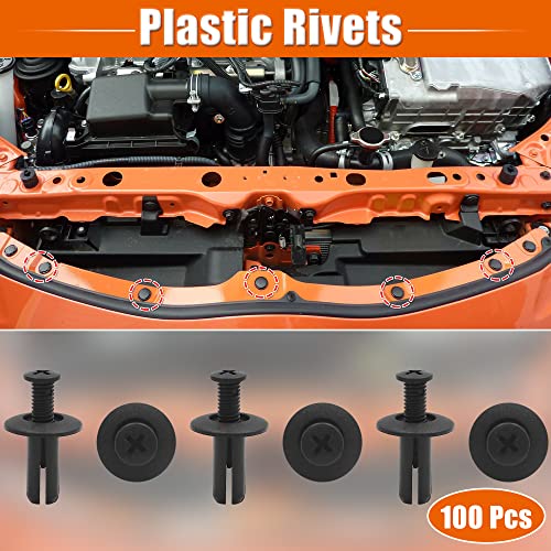 Sourcing map 100pz in plastica nera 5,8mm Auto pannello rivetti fissaggio paraurti parafango fermi