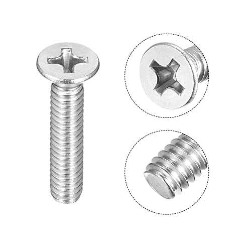 Sourcing map 1/4-20x1-1/4" Piatto Testa Macchina Viti Phillips 304 Inossidabile Acciaio Bulloni 25pz