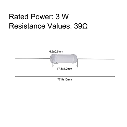 Sourcing map 20pz 3W 3 Watt ossido metallo resistore a pellicola filo assiale 39 Ohm ± 5% tolleranza