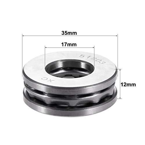 Sourcing map 51203 Spinta Sfera Cuscinetti 17mm x 35mm x 12mm Cromo Acciaio Singolo Direzione