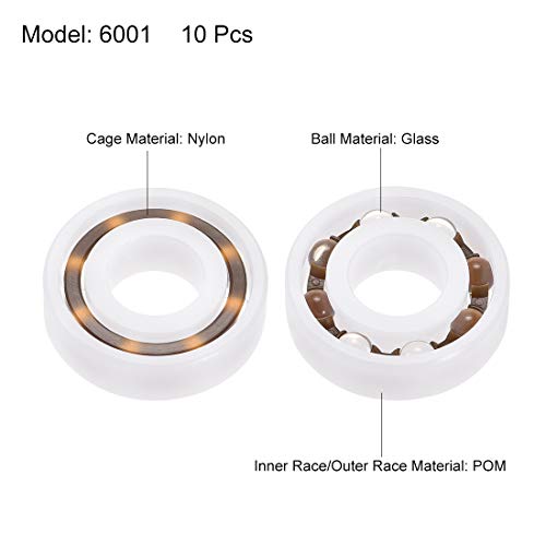 Sourcing map 6001 Cuscinetti in Plastica 12x28x8mm Sfera di Vetro Nylon Gabbia 10pz