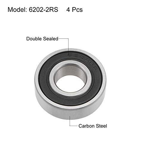 Sourcing map 6202-2RS Profonda Scanalatura Sfera Cuscinetti Z2 15mm X 35mm X 11mm Doppio Schermato Acciaio Carbonio 4pz