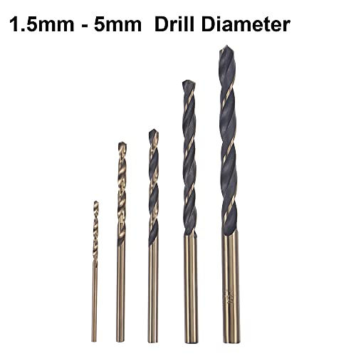 Sourcing map HSS 6542 Cobalto Jobber Twist Drill Punta Set per Inossidabile Acciaio Alluminio Lega Legno 1,5mm - 5mm 5 Pz