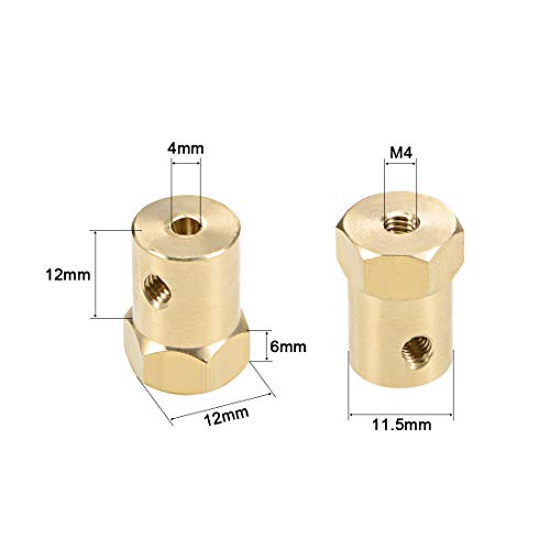 Sourcing map Hex Accoppiatore 4mm Foro Motore Hex Ottone Albero Giunto Connettore Flessibile per Auto Ruote Pneumatici Albero Motore 8pcs