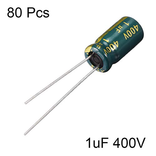 Sourcing map Alluminio radiale Condensatore elettrolitico bassa ESR verde con 1uF 400V 105 Celsius vita 3000H 6,3 x 12 mm Corrente elevata ondulazione, bassa impedenza 80pz