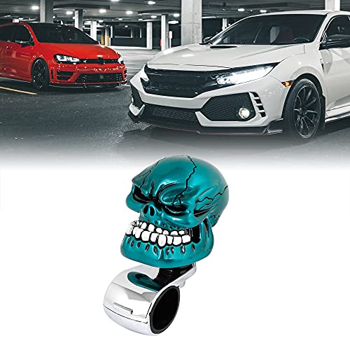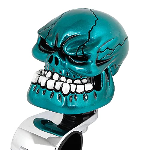 Sourcing map Auto Blue Skull Head Style Steering Wheel Knob Power Silver Tone Handle