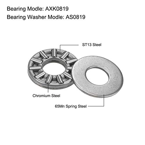 Sourcing map AXK0819 Pressione Assiale Rullino Cuscinetti con Rondelle 8mm Foro 19mm OD 2mm Larghezza 10pz
