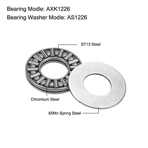 Sourcing map AXK1226 Pressione Assiale Rullino Cuscinetti con Rondelle 12mm Foro 26mm OD 2mm Larghezza 10pz